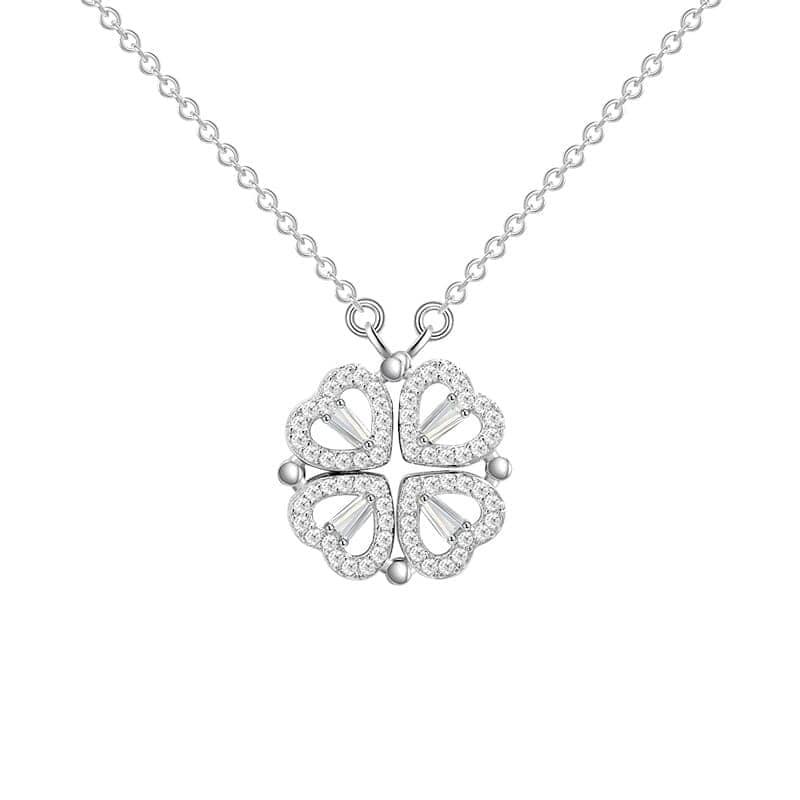 O Colar Gravite possui 4 corações com imãs que se conectam formando um encantador trevo de 4 folhas em brilhantes, deixando você encantadora em qualquer situação.