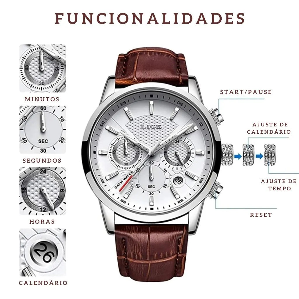 Apresentamos o Relógio de Couro Royal Master. Com um exclusivo e luxuoso design que irá transmitir confiança e sofisticação que você busca.